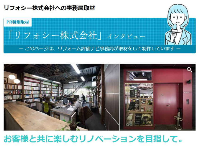 今回リフォシーが評価ナビの取材して頂きました★ 代表の笹井がインタビューに答えています。 リフォシーが大事にしている気持ちやリフォームを通じてのエピソードだったり リフォシー不動産の熱い気持ちが載っています!!! ぜひみ …