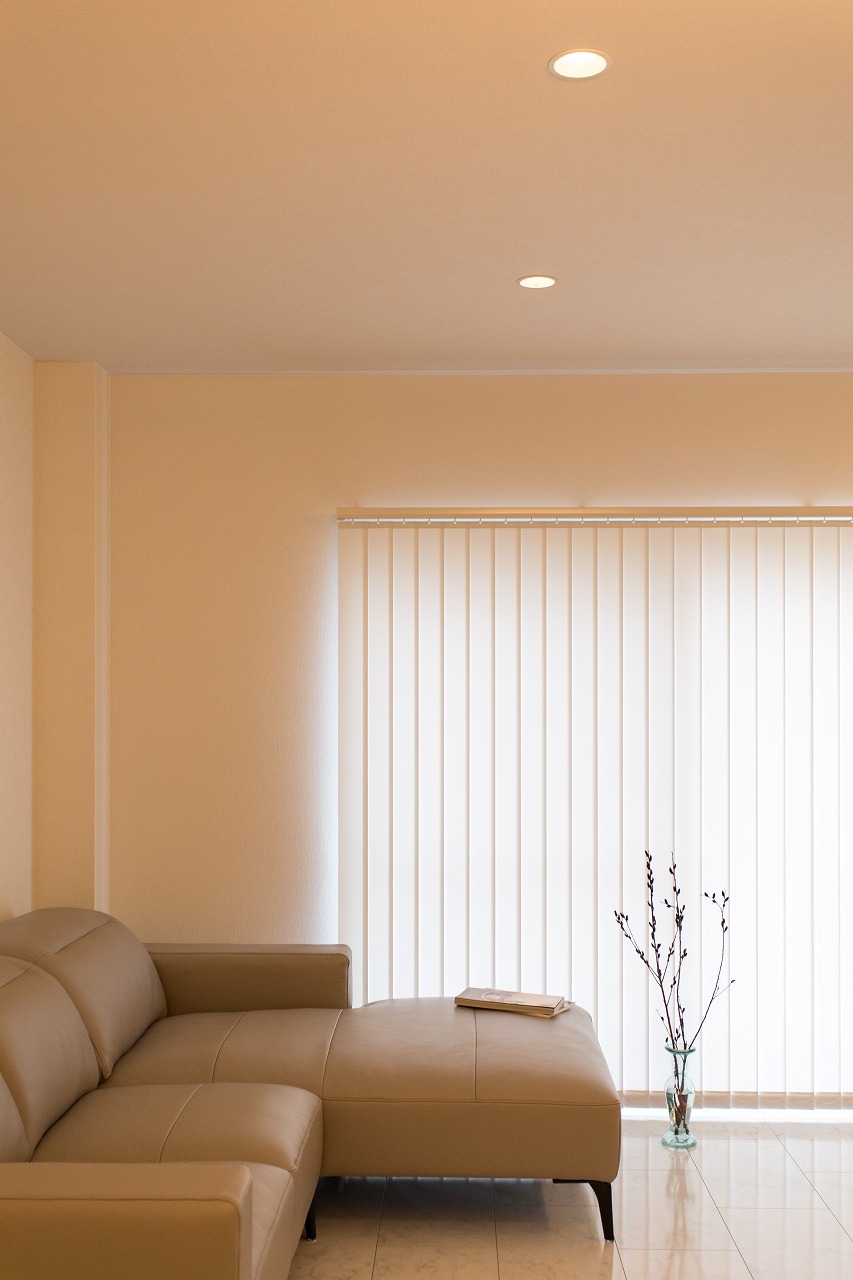 昼間とは雰囲気が変わり、とてもムーディーな雰囲気に。 夜の時間もゆっくりとくつろいでいただけるLDKです。