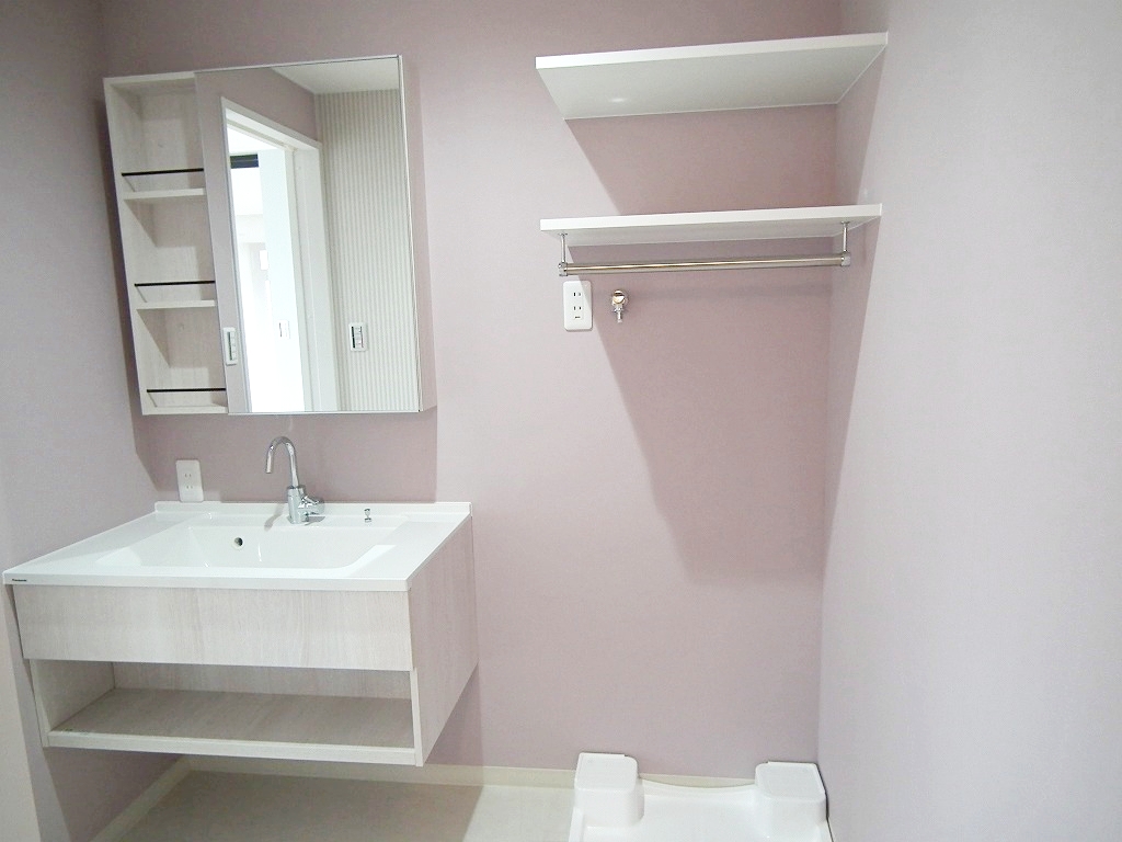 洗面脱衣所とお風呂場はクロスを淡いピンク色を採用され、優しい空間となりました。