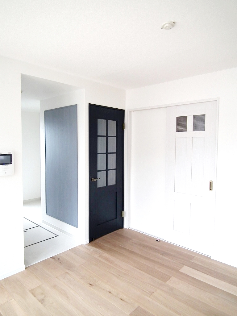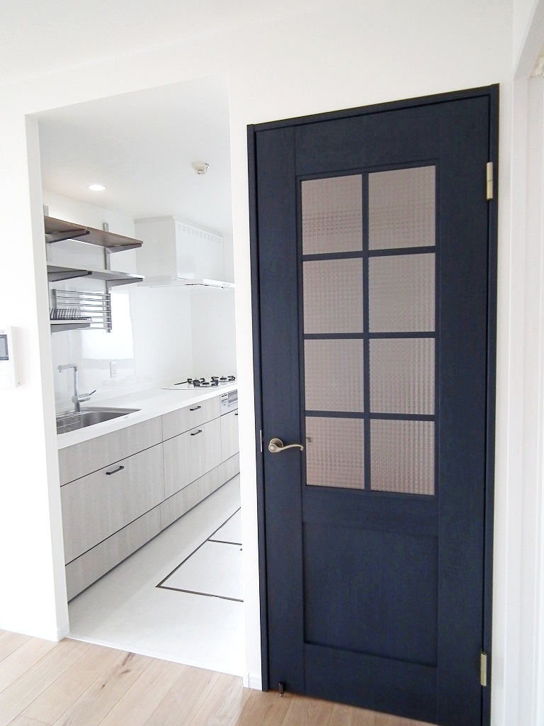 キッチン横のひときわ目立つ建具がアクセントになっています。