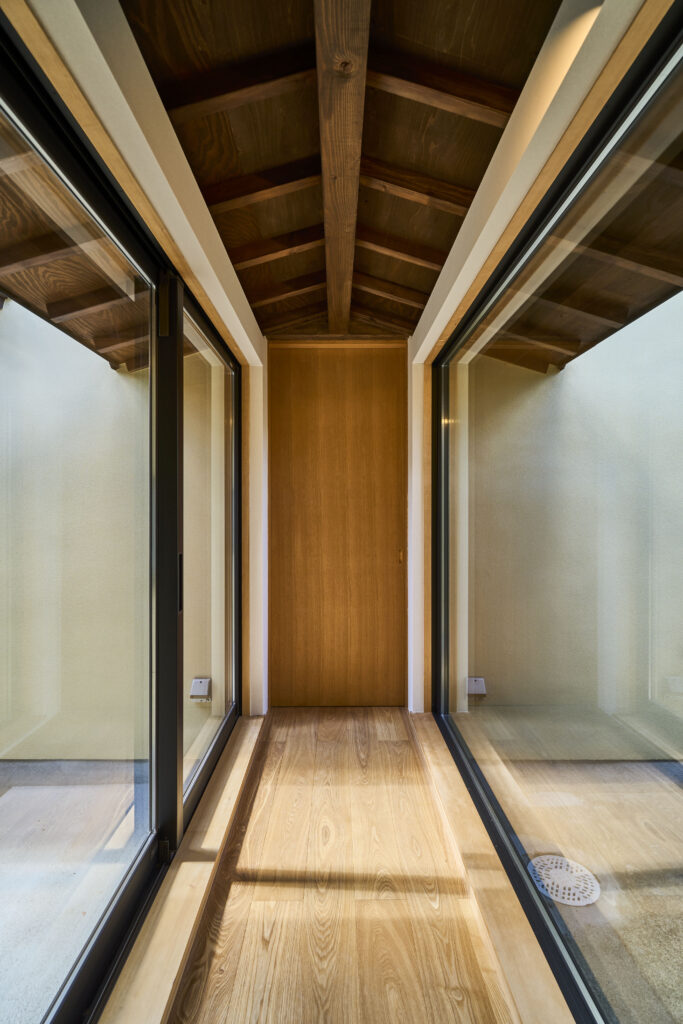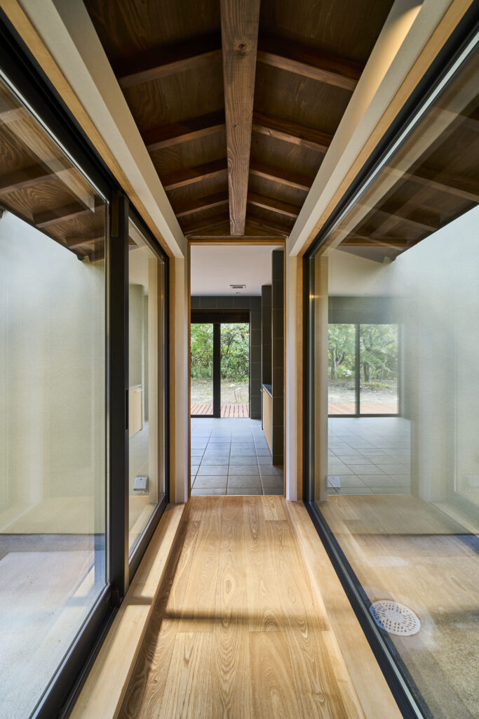 ▼渡り廊下の部分は、左右がサッシになっていて母屋から浴室へとつながっています。