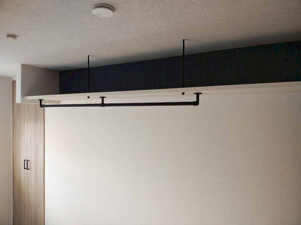 収納量を確保するためハンギングバー/TOSOを取付け、見せる収納に。