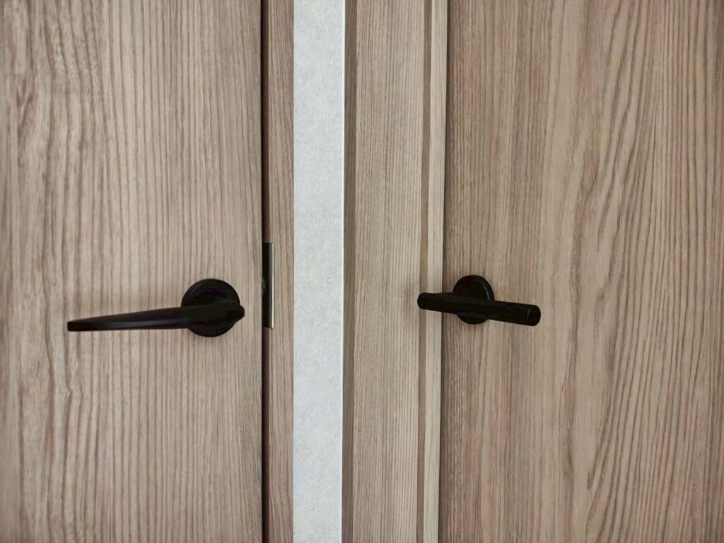 隣り合うドアのレバーハンドルはちょっとした遊び心でデザインの違うものを。
