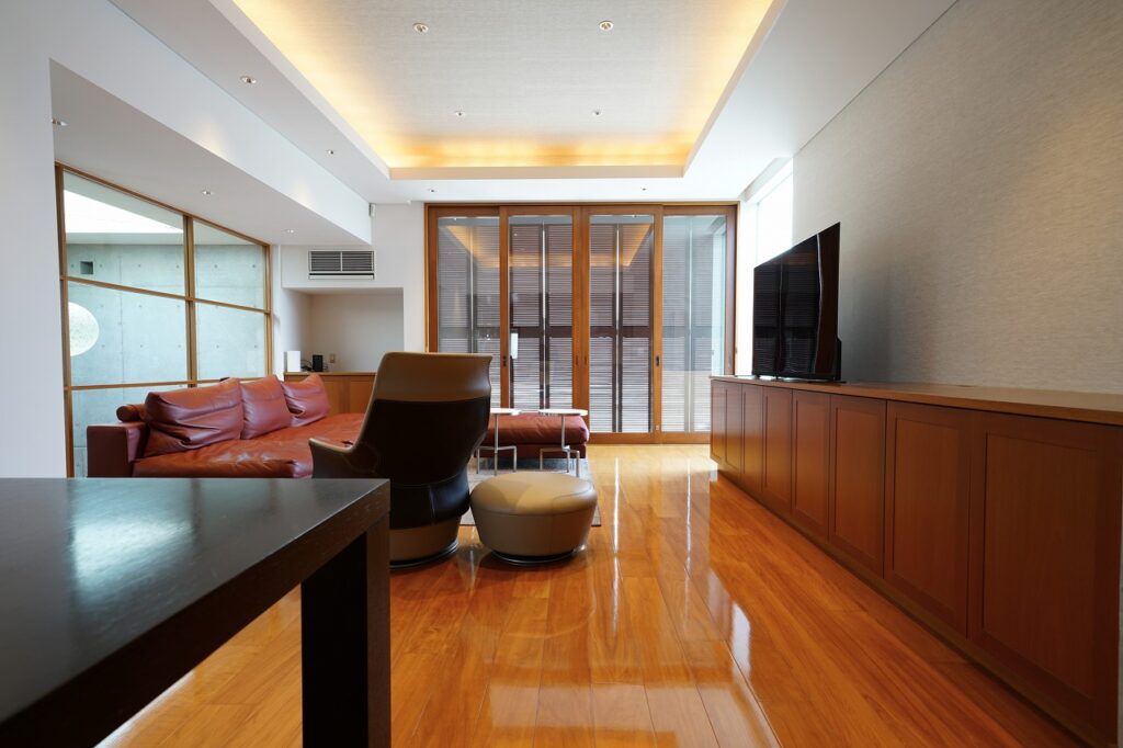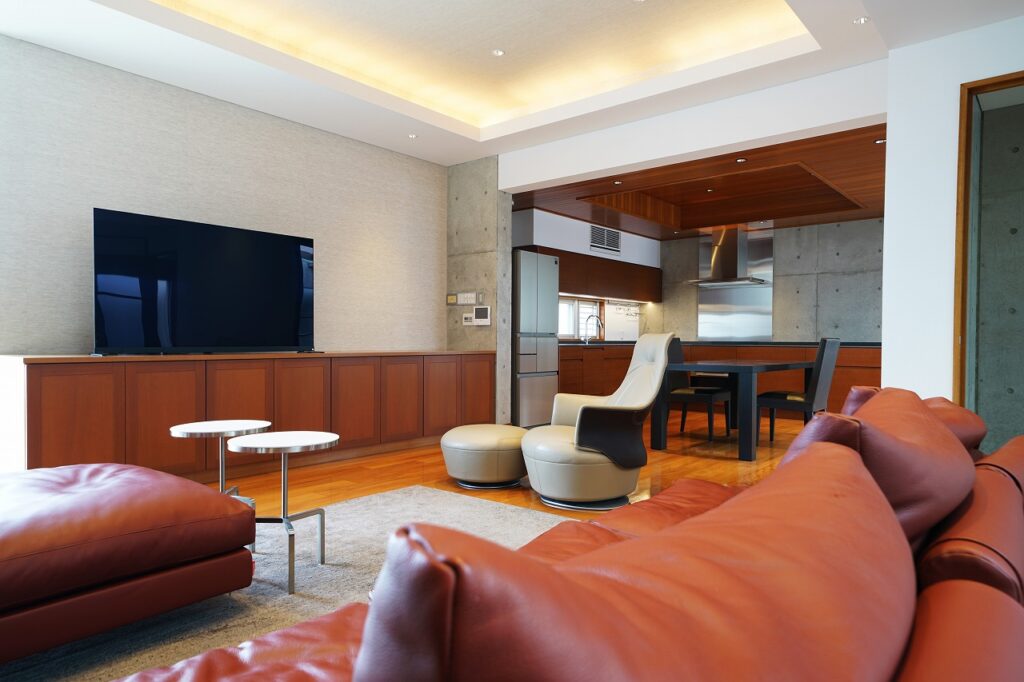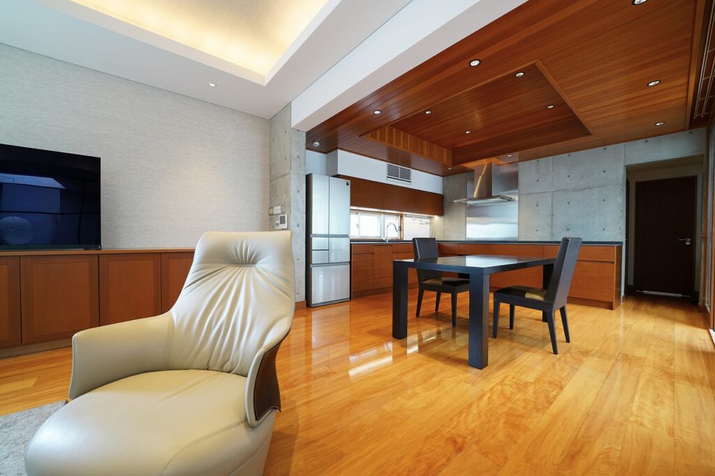 リビングの布クロスの張り替えを行い、壁と天井には塗装をしました。