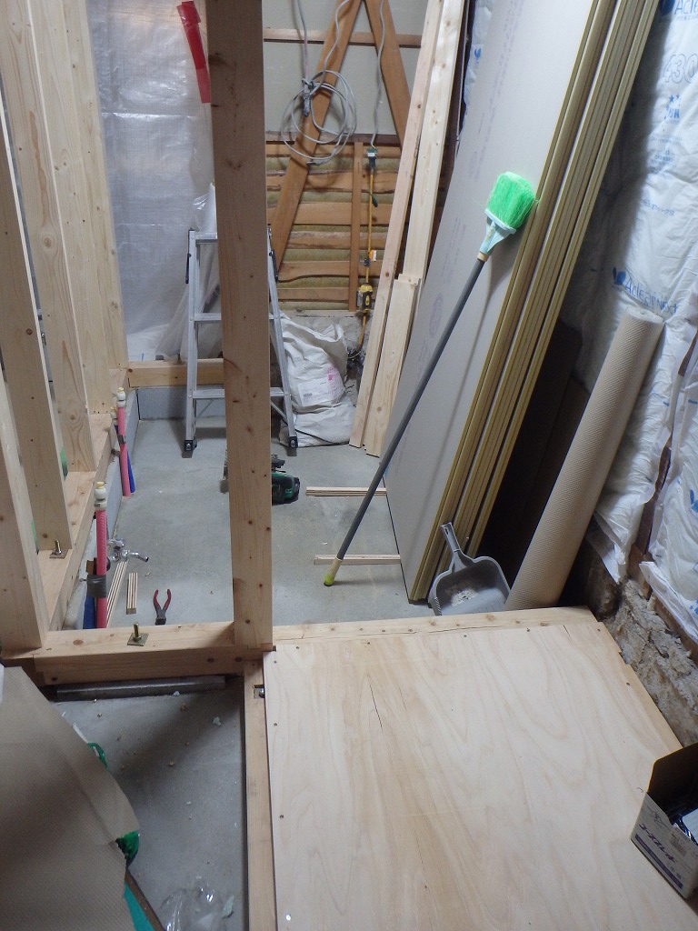 断熱材・床板を張り替え終えて、どんどん工事が進んでいます。