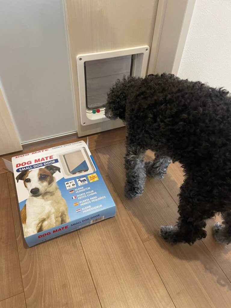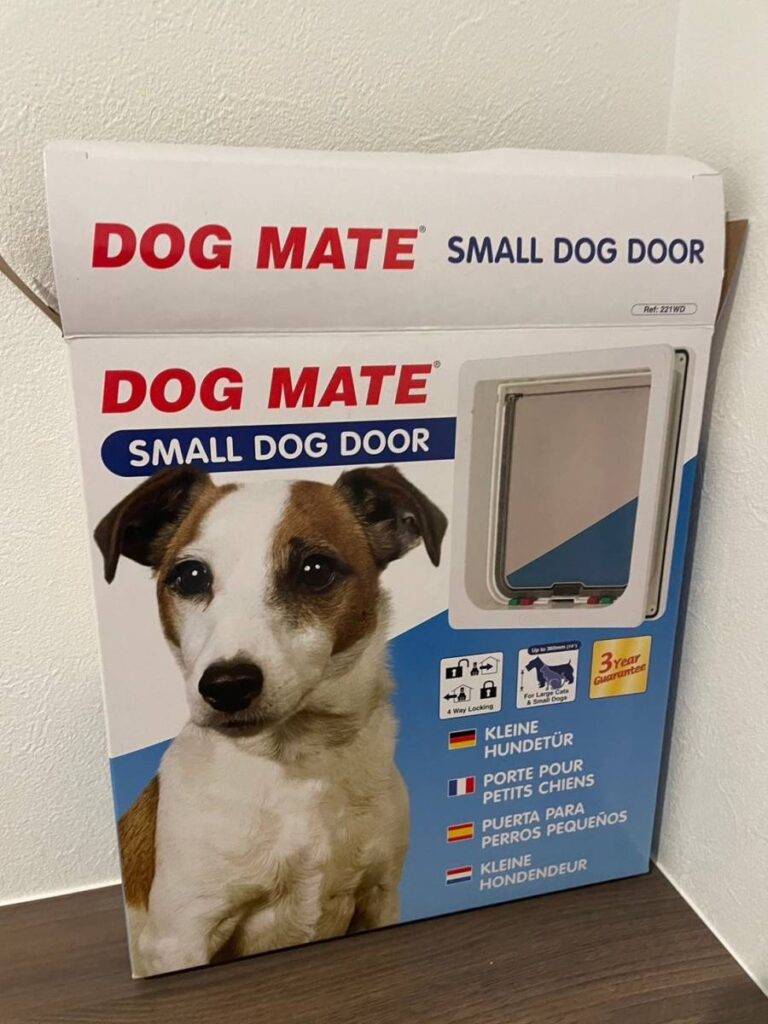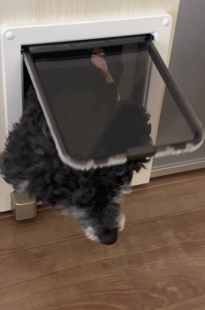 ▼このワンちゃんの出入りがスムーズになるように、ドアを設置していきます。
