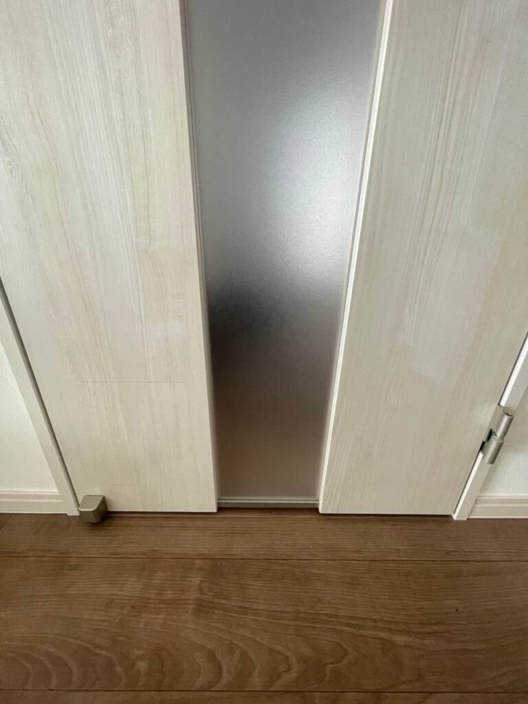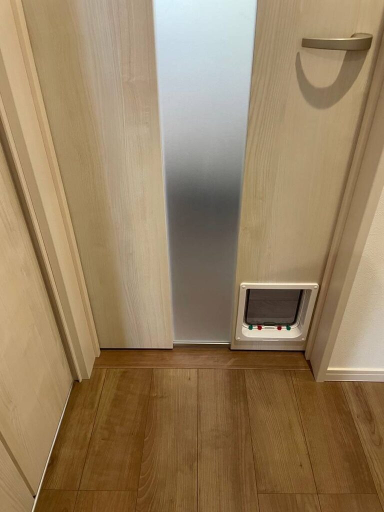 人間用のドアに小さな穴を開けてはめ込んでいきます。