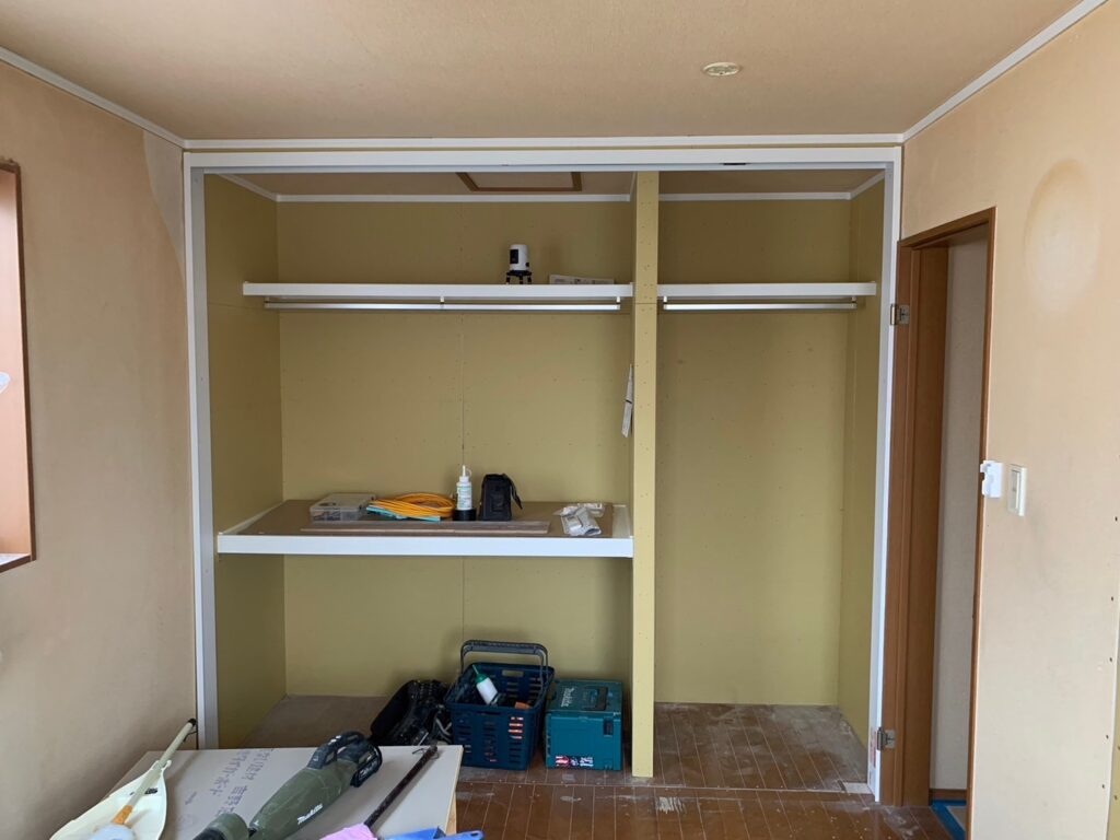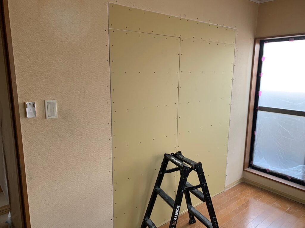 間仕切りで仕切られていた2部屋に壁を造作中です。