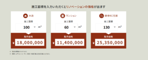 詳しい価格を調べる際はこちらのページで施工面積を入力してください↓