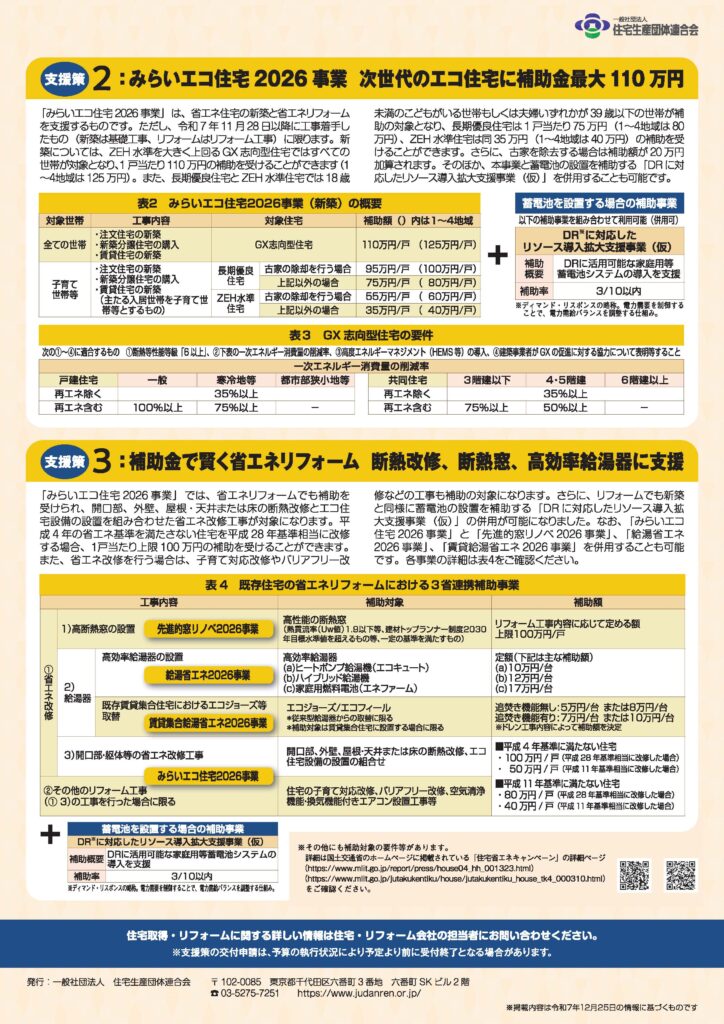 住宅の性能や工事内容、世帯条件によって内容が異なり、期限や予算枠がある制度です。