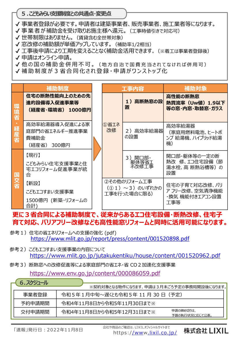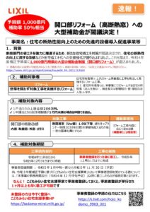 これを踏まえ、令和4年度補正予算案に1,000億円規模の大型の補助金制度(開口部リフォーム)が盛込まれました。